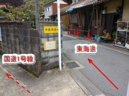 山科への分岐案内標 草津宿の案内地図 電柱上部にある東海道標識 草津宿で中山道と東海道に別れる 鈴鹿峠の西側にある一里塚 坂下宿の掲げられた案内標識 亀山から庄野宿の案内板 四日市の東海道案内板 桑名宿の町屋橋 案内板地図 知立の案内板と案内地図 27曲りの標柱 御油宿での案内標識 白須賀宿での案内地図 浜松宿での案内地図 丸子宿での案内標識と地図 府中宿での案内地図 薩埵峠への案内板 案内地図 由比宿の案内標識 蒲原宿の案内地図 吉原宿での案内標柱 箱根旧街道地図 山中一里塚標識 箱根 葭原久保の一里塚 藤沢宿の案内地図 保土ヶ谷宿での案内標識 川崎宿の案内地図 品川宿での一里塚
