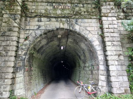「鮒ヶ谷隧道」は最も短いトンネルで坑門の石積や煉瓦アーチでできている。