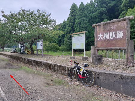 廃線跡 直進的な気持ちの良い下り坂→ | 大桐駅跡→ |
