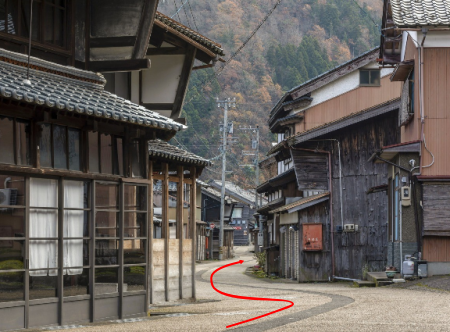 いよいよ北陸道で鍵辻のある今庄宿へ→ | 今庄宿のメイン街道→ |