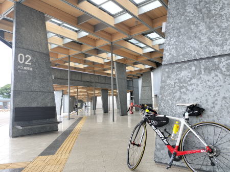 復りは国道476号線で孫谷川沿いに帰るがほとんどが山中のため変化が無い。これなら今庄宿から海側に抜けて敦賀湾沿いに帰る近代化遺産周遊ルート通りに行けばよかったと反省。途中、湖北に向かう365号線への分岐で木ノ芽峠?を超え、木ノ芽峠トンネルを抜けて後は一気にダウンヒルで敦賀市に入り、樫曲隧道の先で左側にある旧道(木の芽川の右岸)に入る。右手に現れた2024年3月16日に開通した真新しい、かつ立派な敦賀新幹線駅に立ち寄る。流石に新しいだけあって綺麗でモダンな駅舎である。市内をうろうろしながら昨夜投宿したホテルに15時過ぎに到着。車を引き取り、二泊三日の自転車旅は無事、終了。 気候も良く、雨に降られず、風も無く、良い条件で楽しいサイクリング旅であった。舞鶴若狭自動車道で我が家に向けて帰る。