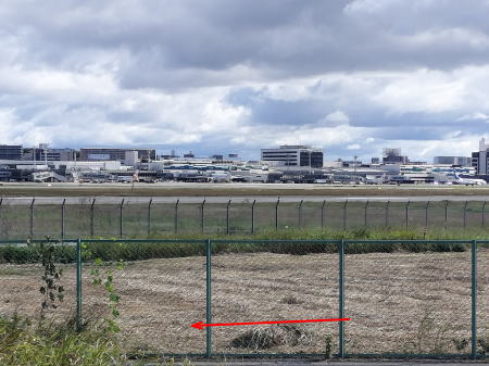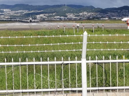 「利倉橋」で左岸に渡ってからは舗装路となり、多くのランナーや家族サイクリストが走っている土手上を快調に走ることができるようになる。1つ目の訪問地は以前に訪れたことがある千里川土手で飛行機の離着陸を見に行くため一旦、猪名川土手から離れる。前回来たときは千里川の見物地点までは地道であったが綺麗に舗装され、おまけにベンチまで設置されている。すっかり観光地化されている。近くにいた飛行機撮影マニアの方に聞くと9時過ぎのため離着陸はピークは過ぎていると言う。先を急がなければならないが折角ここまで来たので次の大型機が来るまでの30分間待機(その間、小型機の着陸はある)。