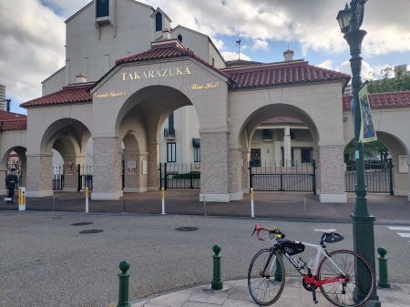 中国道を潜って橋を渡ると武庫川の右岸に出る。その先の「生瀬水道橋」で左岸に渡り、河川敷遊歩道を走行する予定であったが水道橋は人一人がようやく通れる程の広さしかなく、とてもじゃないが自転車では渡れそうも無い。仕方無しにそのまま右岸の小さなアップダウンがある道を宝塚駅まで行く。折角なので久しぶりに宝塚大劇場や手塚治虫記念館に立ち寄った後、武庫川右岸河川敷のサイクリング道を下流に向けて走行。北風のフォローのお陰で30Km近くの速度で快調に走ることができた✌。周りには家族連れなど多くの人々が楽しんでいる。