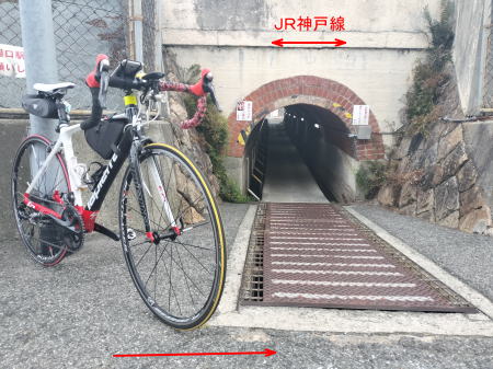 最後に9つ目の訪問地であるJR神戸線の下を潜る小さな「まんぼうトンネル」に立ち寄る。東海道建設当時から在り、大人はかがんで通る必要があり、おまけに交互通行もできない。これで大野天文台以外はすべて訪問完了。撮影後、線路沿いに2Km西進してJR西ノ宮駅に到着。自転車を輪行袋に詰めて16:30の電車に乗って何とか照明無しで帰宅に戻ることができた。
