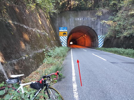 柏原川沿いに更に遡上していく。やがて県道86号線に合流してから奥野々峠に向かって長い坂を上って行く😫。途中、右側に峠道が見えるがストリートビューでは表示されないので最近の状況が見通せないので今回は見送る。「奥野々トンネル」はカーブしているので出口は見えていないがトンネル内の歩道は広いので車を気にせずに走り抜けることができる。ここもトンネル内は下り坂である😊。トンネル南側に出ると先ほどの峠道からの未舗装の下り道が見える。以前に通ったことがあるので楽しみにしていたのだが残念。この奥野々トンネルはトンネルにしては珍しく両側入口の東側には青鬼、西側には庭園の絵が描かれている。
