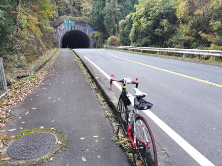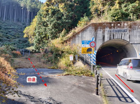 旧峠道で登って行くが山中に入る。薄暗い鬱蒼としたつづら道の登りが続き、当然人っ子一人居ない。今、問題になっている熊🐻が出現しそうな雰囲気となり、ビビりなのでだんだん怖くなり、途中から大声を上げながら駆け上っていく。何事も無く(笑)、「小野尻トンネル」の西側入口に到着。トンネル横にある峠道はフェンスで封鎖されている。出口は見えているがトンネル内の歩道は狭いので車道を全力で走り抜ける。下り坂なので快走😊。トンネル東側口にも旧峠道入口を見かけるがやはりフェンスで通行止めとなっている。両方ともフェンスが左右に続いているので防獣のためなのか❓