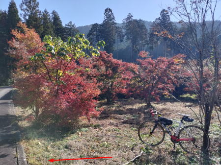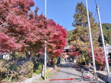 しばらく下ると右脇に旧道を見かけたので県道86号線を離れて旧道に入り、民家の中を抜け下って途中にある「有田春もみじ園」に立ち寄る。個人が苗木を増やしながら整備管理しているらしい。失礼ながらし苗木がほとんどで紅葉🍁しているもののあまり迫力は感じられない。もう少しモミジ木が成長して田舎の観光地になるのを期待しよう。