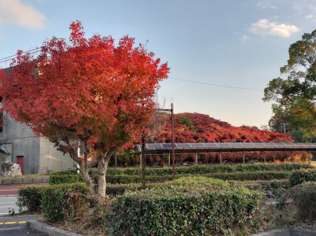 「西林寺」でも紅葉🍁真っ盛り、平日の夕方なので人出はまばらでゆっくり鑑賞できる。しかし、脇にあるドウダンツツジ(満天星つつじ)の見頃はもう少し先のようである。ここも参道入口付近だけで、おいとまして16時に童子山公園に帰着。ここの公園にもあちこちに満天星つつじが真っ赤に色付いている。