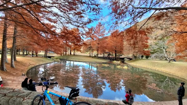 本日は曇り空から次第に晴れてきて、風も無く、アンダーウェアとウィンドブレーカーだけの服装で十分。また何と言っても丁度、紅葉の良い時期にサイクリングができ、また久しぶりの山登りで有馬富士にも登れて満足した一日であった。特に小野公園の「モネの池」は印象的で心に残る景観であった。