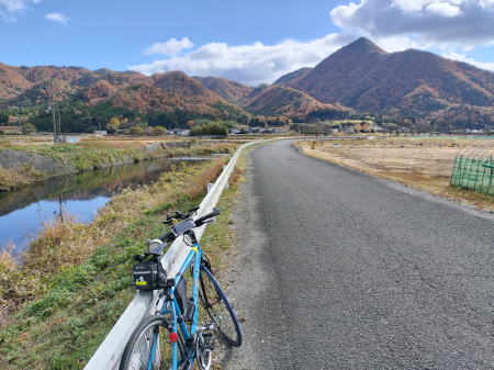 ここからは県道309号線で緩やかに登って「見比峠」を超えて「高平」地区に入る。羽束川(はつかがわ)沿いに平野部が広がり、田園と山々の秋の風景を眺めながらのんびりサイクリング🚴♂️ができるようになる。気温も上がり、車もほとんど通らない絶好ののサイクリング日和となる。途中にある、登る山の候補の一つの「大船山(おおふなやま)」の登山口を確認すべく、山裾の道を選んで南下して進んでいく。目的の「天柏(あめのかわ)神社」を見付けることができたので、後はサイクリングを楽しむ。